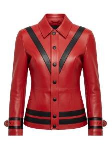 Every stitch of the Elegant Classic Red Leather V Stripe Jacket speaks of quality. Made from premium leather, it offers durability, comfort, and a polished texture that fashion lovers appreciate in high-end apparel.